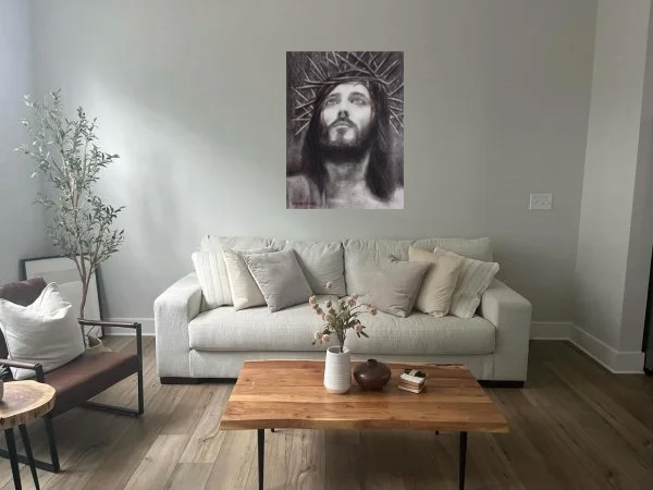 Ο πίνακας σε καμβά που αναπαριστά το έργο «Ιησούς Χριστός» του Χανιώτη ζωγράφου Ιγγλεζάκη Ματθαίου, το οποίο έχει δημιουργηθεί με κάρβουνα και μολύβια, αποτελεί μια μοναδική ευκαιρία να προσθέσετε στην κατοχή σας μια αυθεντική και βαθιά εκφραστική εικόνα. Το έργο ξεχωρίζει για την ιδιαίτερη τεχνική του και την έντονη συγκινησιακή φόρτιση που αποπνέει, αποτυπώνοντας με ρεαλισμό και ευαισθησία το πρόσωπο του Ιησού Χριστού. Με την επιλογή του καμβά, το αντίγραφο αποκτά ζωντανή υφή και μεγάλη ανθεκτικότητα, διατηρώντας την ομορφιά και το βάθος του πρωτότυπου έργου για πολλά χρόνια.